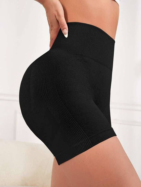 شرتک سیملس پشت چین کمر گنی کش لیفت باسن تک رنگ مشکی سایز ۴۴